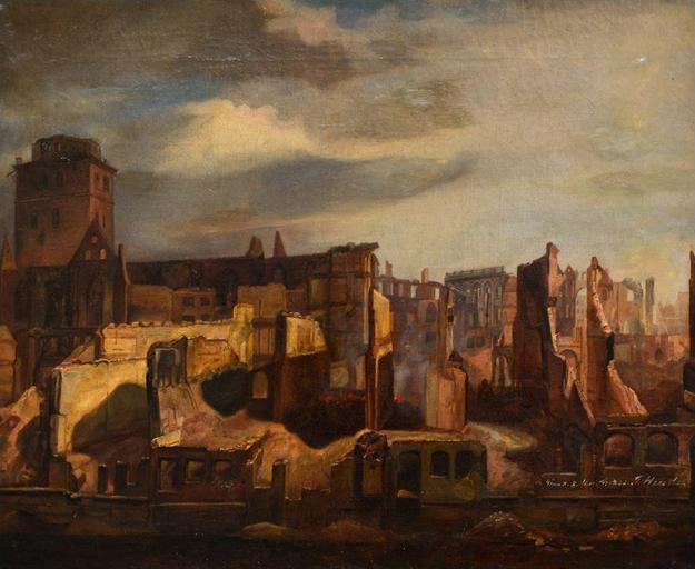 | Keywords: Franz Heesche.JPG de Hamburg nach den Großen Brand 1842 Öl auf Leinwand 58 42 × 50 17 cm en City of Hamburg after the Fire 1842 Oil/Canvas 19 3/4 x 23 1/2 signed lower right dated 1842 encased in a later pierced carved and painted frame with restorations 27 1/2 x 31 1/2 1842 Computer Creator Franz Heesche other versions PD-old-100 Uploaded with UploadWizard Franz Heesche Hamburger Brand Destroyed in Germany in 1842 St Nikolai Hamburg before 1843 | ||||