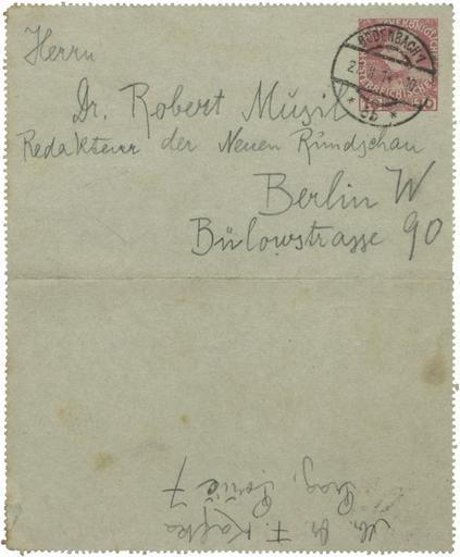 Keywords: Franz Kafka an Robert Musil 1914-02-27 Umschlag.jpg Umschlag zu einem Brief von Franz Kafka an Robert Musil 27 Februar 1914; im Brief geht es um den Abdruck von Kafkas Erzählung Die Verwandlung nur in aller Kürze von einer kleinen aber sehr zerstreuenden und unruhig machenden Reise Sehr schade dass die ersten Briefe die wir wechseln Ihnen so kleinliche Schwierigkeiten bereiten müssen Machen Sie verehrter Herr Doktor mit der Geschichte was Sie wollen und was Ihnen nicht Mühe bereitet - es wird das Richtige sein Die Mitteilungen über Ihre Pläne die Sie mir in Aussicht stellen erwarte ich mit Freude der unedierte Brief leider im Katalog nicht abgebildet http //www bassenge com Galerie Bassenge 1914-02-27 Creator Franz Kafka PD-ineligible PD-old-70-1923 Images from Galerie Bassenge 1914 letters Franz Kafka Robert Musil Manuscript covers |