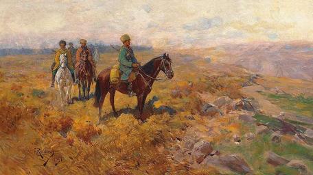 Keywords: Franz Roubaud Kaukasische Reiter.jpg Artwork Creator Franz Roubaud 1894 oil canvas cm 42 72 object history credit line F Roubaud / 1894 lower left signature and date accession number http //www zeller de/de/katalog/auktion-90-sep-06/auktionsartikel/franz-roubaud-1856-odessa-1928-muenchen-erhielt-bereits-im-alter-von-sechs-jahren-erste-1/ Auktionshaus Zeller Auktion 90 Sep 2006 Los 1117 tump 200px PD-old-auto 1928 Franz Roubaud Paintings of men on horseback Military paintings History of the Caucasus Chokha with fur hat in art People of the Caucasus with chokha Images from Auktionshaus Zeller Fur fashion in 1894 |