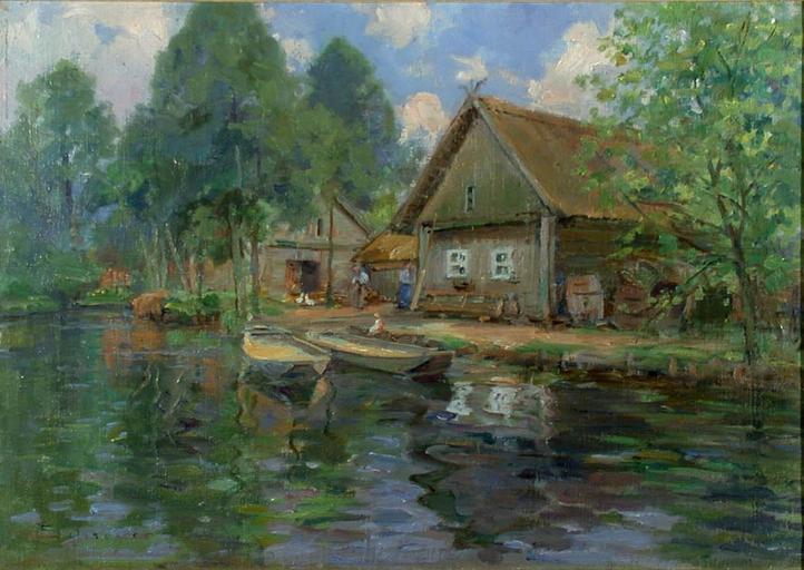 | Keywords: Franz Schreyer - Bauerngehöft mit Nebengebäuden an einem Kanal.jpg oil canvas cm 54 72 object history credit line accession number http //www bloss-auktionen de/seiten/Artikelseite_new php auktion A45 kat_nr 1657 language en www bloss-auktionen de PD-old-auto-1923 1938 Franz Oskar Bernhard Schreyer Spreewald in art |