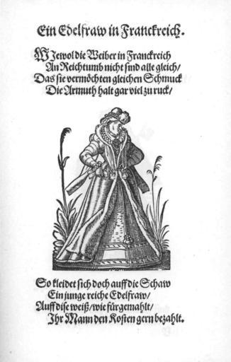 Keywords: Frauen-Trachtenbuch 077.jpg 076 078 Ein Edelfraw in Franckreich Nobility of France French national costumes Fur linings in art Fur fashion in 1586 Fur clothing of native people of France