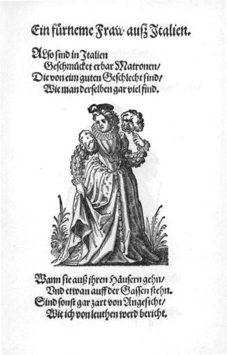 Keywords: Frauen-Trachtenbuch 097.jpg 096 098 Ein fürneme Fraw auß Italien Women of Italy in the Frauen-Trachtenbuch 1586 Fans in art
