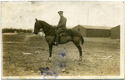 Keywords: Fred C Palmer equestrian portrait WWI.jpg Postcard photo of Lance Corporal A K Croker of the Lancashire Hussars in 1915 during World War I The postcard is postmarked Canterbury 3 February 1915 Croker has written a note on the back with the same date and Canterbury location saying he had been stationed in Canterbury since October 1914 It is addressed to Miss Milly Taylor of Bolton Lancashire The photographer was Fred C Palmer of Tower Studio Herne Bay Kent as printed on the back of the card He lived there 1903-1922 and is believed to have died 1936-1939 The soldiers based closest to Palmer's studio in 1914-1915 were The Buffs East Kent Regiment which raised nine battalions in World War I Today the Buffs are amalgamated into the Princess of Wales's Royal Regiment ;Points of interest The ink is smudged perhaps due to rain or damp storage conditions or perhaps due to tears as many men were lost in that war The barracks in the background may be the Canterbury barracks formerly occupied by the Buffs The horse has a hunting cut intended to facilitate the removal of mud from the underbelly Border The remaining border of this image is important for researchers of this photographer Some photographers trimmed their images more than others and Palmer has a reputation for producing smaller postcards than other early 20th century UK photographers He took his own photos developed them in-house onto postcard-backed photographic paper and trimmed them himself It is worth adding that during hand-developing the border is actively masked with equipment which both crops the picture and causes the white frame or border to appear on the paper This frame is part of the design and is one of the reasons why the quality of Palmer's work is so interesting and why there is an article and category for him on English Wiki Researchers need to see exactly where the edge of the postcard is Thank you for taking the time to read this Scan of original postcard in my possession Postmarked 1915 Fred C Palmer died 1936-1939 out of copyright PD-old-70-1923 Fred C Palmer of Herne Bay World War I forces of Britain Soldiers of the United Kingdom |