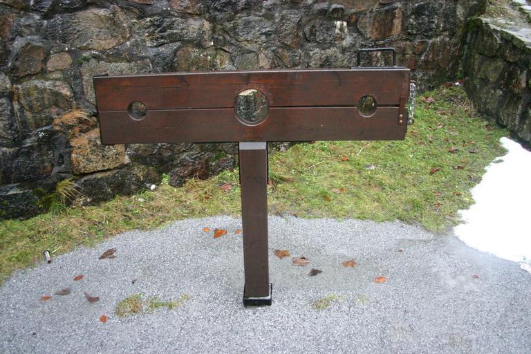 Keywords: Fredriksten4201 resize.JPG en Fredriksten festning Halden Own Ida Heen Hansen 03 04 2009 Fredriksten festning Pillories in Norway Stocks restraints