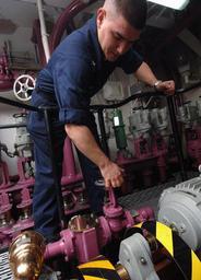 Keywords: Free Water DVIDS75015.jpg en Aviation boatswain's mate Petty Officer 3rd Class Matthew L Fox opens a JP-5 fuel tank releasing free water from a storage tank in pump room 3 aboard the Nimitz-Class nuclear powered aircraft carrier USS Harry S Truman Truman and embarked Carrier Air Wing 3 are underway on a scheduled deployment in support of Operations Iraqi Freedom Enduring Freedom and maritime security operations 2008-01-06 Fuel https //www dvidshub net/image/75015 080106-N-+++++-006 2008-01-29 15 18 USS HARRY S TRUMAN AT SEA PD-USGov-Military-Navy USS Harry S Truman CVN-75 Images from DoD uploaded by Fæ