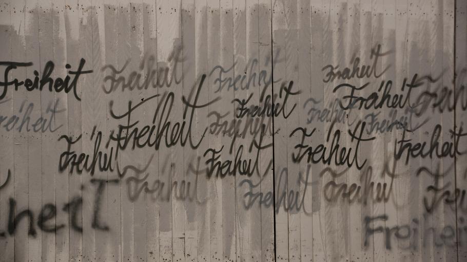 Keywords: freedom fence liberty wood plank art writing german contrast free will graffiti message construction site hoarding hoarding site fence