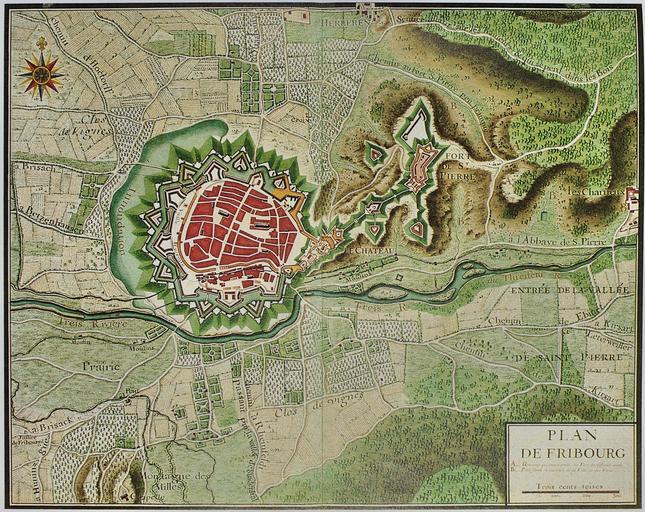 Keywords: Freiburg hist map 009.jpg Karten und Festungspläne von Freiburg Plan de Fribourg Bibl Nat Paris CE DD 4586 4 Res Pl 27 photographs of historical dokuments Author died more than 70 years ago - public domain PD-old Old maps of Freiburg im Breisgau |