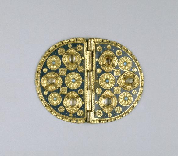 | Keywords: French - Clasp for a Secular Garment - Walters 4416.jpg During the Middle Ages copper mantle clasps with enameled decoration and gemstones were primarily made for church garments This clasp from France was sewn onto fabric using holes around the borders However this piece without figural representation and decorated with gemstones could have been worn with a secular garment late Other date century 13 Medieval gilded copper champlevé enamel gemstones cm 8 41 10 8 accession number 44 16 23964 Victor Gay Paris by purchase Collection of Victor Gay Sale Hôtel Drouot Paris March 23 1909 no 35 Henri Daguerre Paris by purchase Henry Walters city Baltimore Walters Art Museum Henry Walters Acquired by Henry Walters 1924 The Arts of Man Dallas Museum of Art Dallas 1962 Jewelry - Ancient to Modern The Walters Art Gallery Baltimore 1979-1980 Objects of Adornment Five Thousand Years of Jewelry from the Walters Art Gallery Baltimore Cooper-Hewitt National Design Museum New York; Chrysler Museum of Art Norfolk; Carnegie Museum of Art Pittsburgh; San Antonio Museum of Art San Antonio; Philbrook Museum of Art Tulsa; Honolulu Academy of Arts Honolulu; New Orleans Museum of Art New Orleans; Milwaukee Art Museum Milwaukee; Minneapolis Institute of Arts Minneapolis; Toledo Museum of Art Toledo; The John and Mable Ringling Museum of Art Sarasota 1984-1987 Jewelry from the Walters Art Museum and the Zucker Family Collection The Walters Art Gallery Baltimore 1987 Bedazzled 5 000 Years of Jewelry from the Walters Art Museum Frist Center for the Visual Arts Nashville; The John and Mable Ringling Museum of Art Sarasota; The Walters Art Museum Baltimore 2006-2009 Bedazzled 5 000 Years of Jewelry El Paso Museum of Art El Paso 2010 place of origin Limoges France Walters Art Museum license Medieval metalwork in the Walters Art Museum Jewellery in the Walters Art Museum Art of France in the Walters Art Museum Media contributed by the Walters Art Museum needs category review |