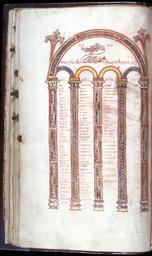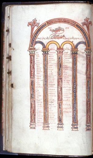 Keywords: French - Leaf from Gospels - Walters W317V - Open Reverse.jpg Frence late Other date century 10 Medieval ink paint parchment cm 31 18 accession number W 3 17V 2813 Abbey Saint-Benoit-sur-Loîre Fleury late 10th century Léon Gruel Paris prior to 1903 mode of acquisition unknown Henry Walters city Baltimore Walters Art Museum Henry Walters Acquired by Henry Walters 1903 place of origin Fleury France Walters Art Museum license 2D Walters MS W3 - Gospels Canon tables Pisces astrology