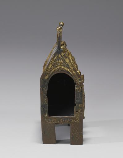 | Keywords: French - Reliquary Shrine with Scenes from the Life of Christ - Walters 444 - Side B.jpg One long side of this shrine shows the Massacre of the Innocents with the dog-faced Devil counseling the enthroned King Herod at the far right of the lower panel Above the Virgin and Child are led by Joseph toward an open gateway to flee into Egypt from the slaughter shown behind and below them The opposite long side has cast figures of Christ enthroned between Apostles John and James above and the Virgin with the Christ Child in her lap between Archangels Raphael and Gabriel below The Annunciation is displayed on one end The shrine has lost its wooden core as well as the door that once sealed the relics inside middle Other date century 13 Medieval champlevé enamel on copper with gilding cm 24 23 5 8 5 accession number 44 4 24165 From Toulouse archives of Brimo de Laroussilhe Brimo de Laroussilhe Paris by purchase Henri Daguerre Paris by purchase Henry Walters city Baltimore Walters Art Museum Henry Walters Acquired by Henry Walters 1928 Inscribed on band along the roof of the chasse on Christ Enthroned side SCS IA/COBUS SALVA/TOR MUNDI / SCS IOHS ; Transcription SANCTUS IA/COBUS SALVA/TOR MUNDI / SANCTUS IOHANNES ; Translation Saint James the Savior of the World Saint John Inscribed on band along top of the lower panel on Christ Enthroned side SCS/ MICAEL SCA/ MARIA SCS G/ABRIEL; Transcription SANCTUS/ MICHAEL SANCTA/ MARIA SANCTUS G/ABRIEL; Translation Saint Michael Saint Mary Saint Gabriel Reliquaries and Ritual Medieval Objects of Devotion The Walters Art Gallery Baltimore 1984-1985 place of origin Limoges France Walters Art Museum license Medieval metalwork in the Walters Art Museum Champlevé of Europe Limoges champlevé Medieval reliquaries Art of France in the Walters Art Museum |
