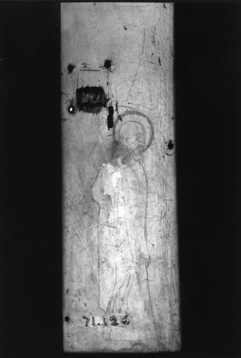 | Keywords: French - Saints and Censing Angel - Walters 71126 - Reverse.jpg Two female saints one with a jar and book and the other with a bird and palm face to the left beneath a trefoil arch Above an angel kneels beneath a round arch and holds a censer and incense boat The panel has been broken and cut to conform with the arch at the top and has broken miters for hinges on the left side The right border has been narrowed There are traces of polychromy particularly in the surrounds of the lower arch The back of the panel shows signs of having had a clasp attached to it and there are remains of a standing bearded saint in polychrome The head of the saint is incised into the ivory Although the style of the carved figures on the front is broad with apron-style drapery that of the painted saint on the back is elegant and elongated normally datable to about 1250-1260 While it seems likely that the ivory was painted in a second and very conservative atelier the fact that the head of the saint is incised into the ivory suggests it was drawn by an ivory worker between 1330 1350 Medieval ivory traces of polychromy cm 16 8 4 5 accession number 71 126 7148 London 1862 exhibited a the South Kensington Museum no 161 John Watkins Brett London date of acquisition unknown by purchase J Brett Sale Christie's London April 18 1864 no 2008 Octave Homberg Paris date of acquisition unknown by purchase Octave Homberg Sale Hôtel Drouot Paris May 11 1908 no 484 Jacques Seligmann Paris date of acquisition unknown by purchase Henry Walters city Baltimore Walters Art Museum Henry Walters Acquired by Henry Walters 1912 place of origin Paris France Walters Art Museum license Medieval ivory in the Walters Art Museum Art of France in the Walters Art Museum Media contributed by the Walters Art Museum needs category review |