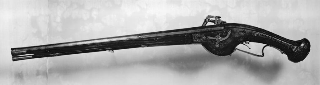 Keywords: French - Wheel-lock Pistol of Louis XIII of France - Walters 51435.jpg This pistol is one of a pair documented as having belonged to King Louis XIII of France 1601-1643 The artistry of the restrained decoration with the brass wire and silver foliage against the pear wood is exquisite between 1635 1640 Baroque steel pear wood brass wire and silver cm 71 accession number 51 435 19582 King Louis XIII from the royal gun room no 208 Clements date and mode of acquisition unknown Henry Griffith Keasbey New York date of acquisition unknown by purchase Sale American Art Association New York December 5 1924 no 138 Henry Walters city Baltimore Walters Art Museum Henry Walters Acquired by Henry Walters 1924 place of origin Lisieux France Walters Art Museum license Baroque art in the Walters Art Museum Weapons in the Walters Art Museum Art of France in the Walters Art Museum Wheellock pistols |