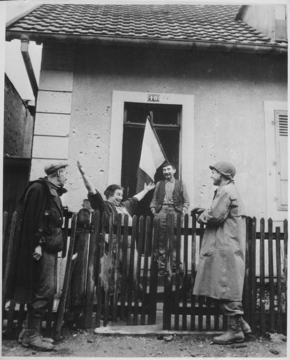 | Keywords: Frenchwoman exclaims to neighbor and to American soldier, "Tout Belfort Est Libre" (All Belfort is liberated). - NARA - 531223.tif Belfort Est Libre All Belfort is liberated Scope and content General notes Use War and Conflict Number 1052 when ordering a reproduction or requesting information about this image 531223 Local identifier 111-SC-196728 Department of Defense Department of the Army Office of the Chief Signal Officer 09/18/1947 - 02/28/1964 Still Picture Records Section Special Media Archives Services Division NWCS-S National Archives at College Park 8601 Adelphi Road College Park MD 20740-6001 1944-11-25 Record group Record Group 111 Records of the Office of the Chief Signal Officer 1860 - 1985 Record group ARC 440 Signal Corps Photographs of American Military Activity compiled 1754 - 1954 Series ARC 530707 File unit File unit ARC Variant control numbers NAIL Control Number NWDNS-111-SC-196728 yes Other versions NARA-cooperation PD-USGov World War II in November 1944 Belfort World War II forces of the United States in France Belfort Historical images of Belfort 1944 Raised arms posture Belfort Enthusiasm Belfort Picket fences Belfort United States Army soldiers Belfort Liberation of France Belfort Joy Belfort Photographs taken on 1944-11-25 |