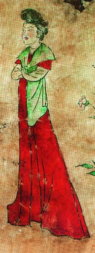 Keywords: Fresco from the Tomb of Madam Ch'i-pi 1.jpg en Fresco of a woman dressing in pomegranate-coloured skirt from the tomb of Madam Ch'i-pi 契苾夫人 656-721 T'ang dynasty http //img0 dili360 com/rw9/ga/M02/01/38/wKgBzFQ2jUSAQNRRAAeEzHxydwI211 jpg anonymous other versions PD-old-100 Art of the Tang Dynasty |