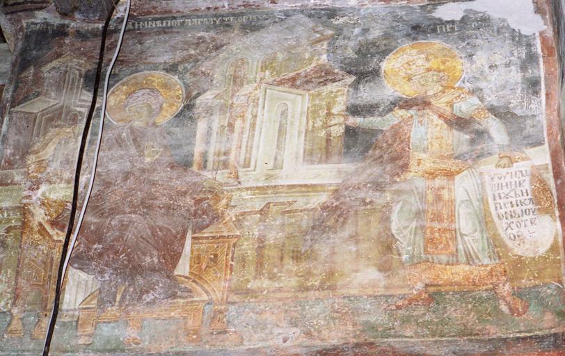 | Keywords: Frescos from the Church of the Presentation of Virgin Mary in Kucevište 021.jpg mk Ф ески во Ц квата Воведение на П есвета Бого одица Св Спас во Кучевиште Скопско en Frescos in the Church of the Presentation of Virgin Mary in Kučevište near Skopje in Macedonia ru Ф ески х ама «Св Спас» в Кучевиште акедония http //sankire narod ru/Kuchevishte html Ф ески х ама «Св Спас» Кучевиште акедония century 14 AD Zograf Gregorij PD-Macedonia PD-Art Frescos in the Church of the Presentation of the Theotokos Kučevište |