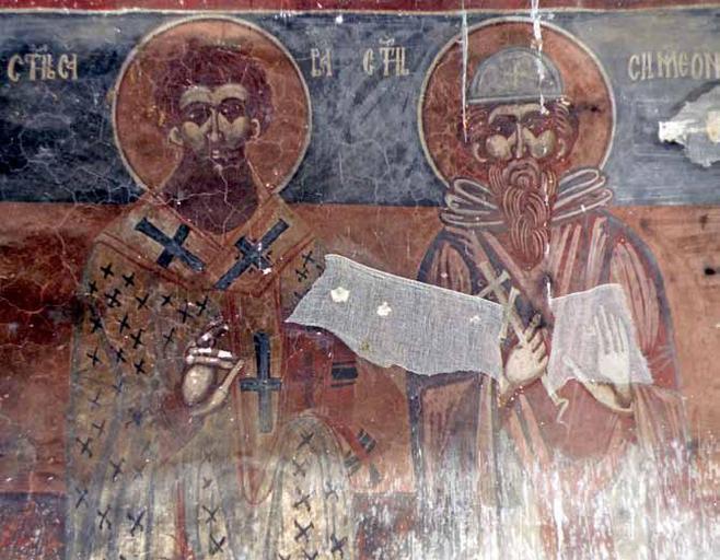 | Keywords: Freska na Sv. Sava i Sv. Simeon vo Sv. Ǵorǵi Vrbjanski.jpg mk Ф еска на Св Сава и Св Симеон во Ц квата Св Ѓо ѓи во ох идското село В бјани http //www kalamus com mk/pdf_spisanija/patrimonium_3/025 20- 2018 20Spisanie 20ZURA 202010 20- 2001 20ok pdf ПОРТРЕТ А ОХРИДСКИОТ АРХИЕПИСКОП ПРОХОР ВО ЦРКВАТА СВ ЃОРЃИ СЕЛО ВРБЈА И ОХРИДСКО Unknown century 16 PD-Macedonia Frescos in St George's Church Vrbjani Saint Sava Stefan Nemanja | ||||