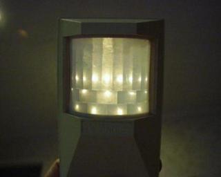 Keywords: Fresnel only.JPG en Front view of Fresnel-lens cover used on window of typical passive infrared motion detector Illuminated from behind by a single point light source Each spot of light is one of 18 Fresnel lenses Photographed and uploaded by me Jack LaRosa 07-26-08 PIR Passive infrared sensor Fresnel lenses Motion detectors |