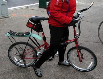 Keywords: Friday Linda jeh.JPG en A en Bike Friday with 16 wheels on a chilly day on Neptune Avenue w Coney Island with luggage rack intended for use with full sized wheel Own Jim henderson 2008-11-20 Bike Friday