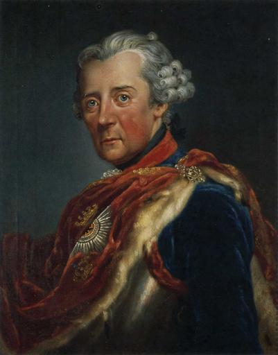 | Keywords: Friedrich II. (Therbusch).jpg Artwork artwork de Friedrich II c 1775 Oil on canvas cm 69 54 Château de Ferney-Voltaire Friederisiko Friedrich der Große Die Ausstellung ed Generaldirektion der Stiftung Preußische Schlösser und Gärten Berlin-Brandenburg Munich Hirmer 2012 p 209 other versions PD-old-100 Anna Dorothea Therbusch Château de Ferney-Voltaire Friedrich II of Prussia in portraits 1775 oil on canvas paintings in France Portrait 1775 portrait paintings Male 18th-century oil portraits of men at half length wearing cuirass 1775c Ermine clothing in art Powdered wigs in art 1775c Star of the Order of the Black Eagle in portrait paintings 1775c Three-quarter view portrait paintings of men facing left Velvet clothing in art |