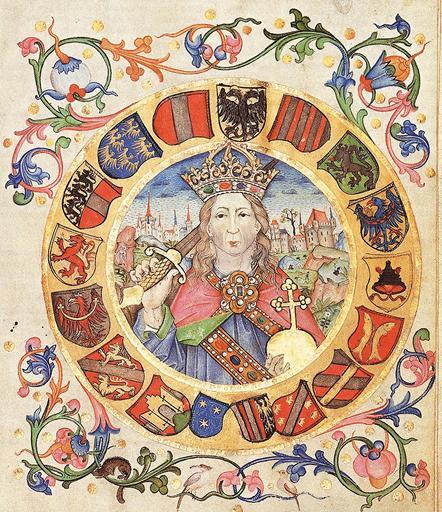 Keywords: Friedrich III. (Greiner Marktbuch).jpg Friedrich III Miniatur im Greiner Marktbuch Scan aus Rudolf Lehr “ Landeschronik Oberösterreich Wien Verlag Christian Brandstätter 2004 S 103 ISBN 3-85498-331-X author ~ 1490 PD-old-100 Frederick III Holy Roman Emperor 15th-century illuminated manuscripts History of Grein Males with swords in art Medieval miniatures of historical persons Illuminated archival materials Historical coats of arms of Austria Coats of arms of Austria to be classified Coats of arms in medieval miniature |
