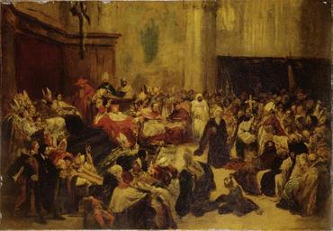Keywords: Friedrich Karl Hausmann - Galilei vor dem Konzil (1852).jpg Friedrich Karl Hausmann 1825 - 1886 Entwurf zu dem 1861 datierten Gemälde der Hamburger Kunsthalle date 1852 oil canvas cm 63 5 91 5 institution Wallraf-Richartz-Museum accession number WRM 1130 object history Otto Lingner Berlin ab 1906<br/>Berlin private Sammlung<br/>1922 als Geschenk von Albert Ottenheimer Köln für das Wallraf-Richartz-Museum erworben credit line exhibition history Deutsche Jahrhundertausstellung Königliche Nationalgalerie Berlin 05010659 <gallery>Jahrhundertausstellung 1906 KatNr 0686 jpg </gallery> PD-old-100 DEFAULTSORT Hausmann Friedrich Karl; Galilei before the Council 1852; Wallraf-Richartz-Museum Friedrich Karl Hausmann German paintings in the Wallraf-Richartz-Museum Galileo Galilei Images from Bildarchiv Foto Marburg |