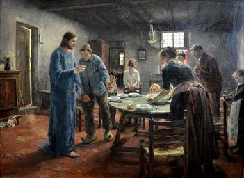 | Keywords: Fritz von Uhde Das Tischgebet 01.jpg Artwork Creator Fritz von Uhde 1885 Oil canvas cm 130 165 Institution Alte Nationalgalerie 2 13 object history credit line accession number own 2012 PD-old-100 DEFAULTSORT Uhde Fritz von; Mealtime Prayer 1885; Alte Nationalgalerie Paintings by Fritz von Uhde Paintings in the Alte Nationalgalerie Grace prayer in art 1885 paintings 1880s paintings in Germany Oil on canvas paintings in Germany Living rooms 19th-century genre paintings 19th-century paintings of Jesus Christ |