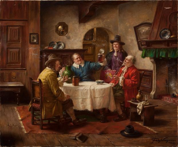 | Keywords: Fritz Wagner - Herrengespräch.jpg Fritz Wagner 1896 “1939 en Gentlemen's Conversation oil canvas cm 69 9 85 1 object history credit line Signed and inscribed lower right Fritz Wagner / Mch accession number http //fineart ha com/c/item zx saleNo 5057 lotNo 64234 Heritage Auctions PD-old-auto-1923 1939 Fritz Wagner painter Images from Heritage Auctions |