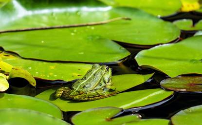 Keywords: frog water frog animal green nuphar pumila leaf biotope