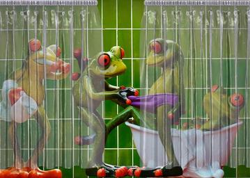 Keywords: frogs bathroom curious funny cute frog sweet fun bath swim brushing teeth wash body care