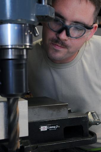 | Keywords: From Cold, Plain Sheets of Metal to Shiny, New Aircraft Parts DVIDS283489.jpg en Senior Airman Jesse Dillard 332nd Expeditionary Aircraft Maintenance Squadron metal technician uses a mill to face down an aluminum block at Joint Base Balad Iraq May 21 The squadron's fabrication flight is composed of Airmen from three career fields -- structural maintenance metals technology and nondestructive inspection Their jobs are to maintain and fabricate aircraft components to keep planes in the air Airman Dillard is a native of Haltom City Texas and is deployed form Little Rock Air Force Base Ark 2010-05-21 Senior Airman Brittany Bateman https //www dvidshub net/image/283489 283489 2010-05-27 03 18 JOINT BASE BALAD IQ PD-USGov Little Rock Air Force Base Joint Base Balad Images from DoD uploaded by Fæ |