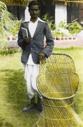 | Keywords: From crescent to cross, India, ca. 1915 (IMP-CSCNWW33-OS14-48).jpg en <br> From crescent to cross India ca 1915 Tinted lantern slide showing a young man Paulas Mishael who was once an orphan cared for by Regions Beyond Missionary Union At the time that the image was taken Paulas Mischel was a teacher in the day school run by Regions Beyond Missionary Union in Siwan Bihar Paulas wears a Western style jacket a shirt and a dhoti a length of white cotton worn around the waist by men most often seen in Indian villages Paulas leans on a wicker chair He wears socks and shoes on his feet and holds a book or tract in his hand This slide comes from a collection created by missionaries from Regions Beyond Missionary Union an interdenominational Protestant evangelical mission working in northeast India Bihar and Orissa and Nepal Photographer Unknown Filename IMP-CSCNWW33-OS14-48 tif Coverage date 1910/1920 Subject unesco Education personnel; Teaching profession Part of collection International Mission Photography Archive ca 1860-ca 1960 Part of subcollection Photographs from the Centre for the Study of World Christianity University of Edinburgh U K ca 1900-ca 1940s Repository name Centre for the Study of World Christianity Archival file Volume3/IMP-CSCNWW33-OS14-48 tif Geographic subject city or populated place Siwan Repository address The University of Edinburgh School of Divinity New College Mound Place Edinburgh EH1 2LX United Kingdom Geographic subject country India Format aacr2 lantern slides 8 2 x 8 2cm Geographic subject continent Asia Rights Contact the repository for details Part of series Regions Beyond Missionary Union India captioned lantern slides CSCNWW33/OS14 Repository email divinity-CSWC ed ac uk Date created 1910/1920 Publisher of the digital version University of Southern California Libraries Subject aat genre portraits Format aat lantern slides; photographs Geographic subject state Bihar Access conditions http //www ed ac uk/schools-departments/divinity/research/centres/world-christianity/collections-resources Geographic subject educational facilities File CSCNWW33/OS14/48 Subject lcsh Men; Teachers 1910/1920 date created author http //digitallibrary usc edu/cdm/ref/collection/p15799coll123/id/78264 PD-old-70-1923 Magic lantern images Images from USC Digital Library uploaded by Fæ International Mission Photography Archive ca 1860-ca 1960 Men of India Clothing of India |