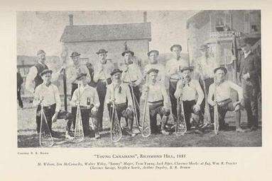 | Keywords: From rattlesnake hunt to hockey page 121.jpg Richmond Hill Young Canadians lacrosse team in 1885 Bull Wm Perkins From rattlesnake hunt to hockey the history of sports in Canada and the sportsmen of Peel 1798 to 1934 Toronto The Perkins Bull Foundation 1934 page 121 http //www pinet on ca/peeldiglib/Page asp PageID 8226 1885 unknown courtesy R R Brown published by Perkins Bull Cropped and slightly restored Image From rattlesnake hunt to hockey page 121 cropped jpg PD-old People of Richmond Hill Ontario Perkins Bull Collection Lacrosse teams in Canada Sports in Richmond Hill Ontario 1885 in Ontario 1885 in sports in Canada |