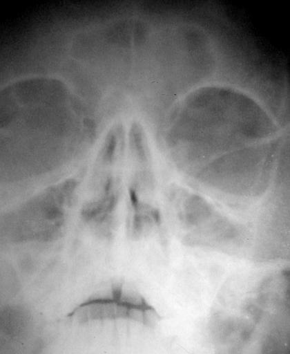 Keywords: Frontal sinus inflamation.jpg en Patient X-ray with confirmed lately inflamation in frontal sinuses Own Alex Khimich 2009-05-06 Waters view X-rays of the head Anatomy of the human head Cavities in skull X-rays of sinusitis Frontal sinuses
