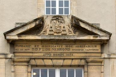 Keywords: Fronton Nesmond séminaire Bayeux.jpg en Pediment at the entrance of the former seminary Bayeux Calvados Normandy France fr Fronton à l'entrée de l'ancien séminaire Bayeux Calvados 2015-04-30 10 57 10 own Jebulon other versions 49 276120 -0 702882 cc-zero Uploaded with UploadWizard Séminaire de Bayeux Pediments in Calvados Reliefs of coats of arms in Calvados Coats of arms in pediments François de Nesmond Coats of arms of bishops of the Roman Catholic Diocese of Bayeux 1693 in France 1693 in religion Hunting horns in heraldry Quality images by Jebulon QualityImage |
