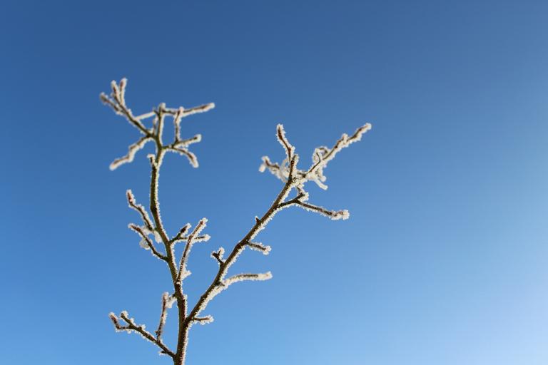 Keywords: frost branch frozen sky blue sky cold winter nature eiskristalle