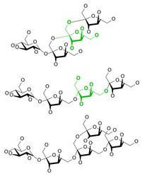 | Keywords: Fructans.svg Three different types of fructans exist inulins levans and the mixed type called graminans The green fructose parts can appear 0 to n times The bottom structure is really called 6 6 1 kestopentaose Created with bkchem+inkscape I created the fructose parts manually to try to reflect real angles in the ring Own 2006-08-03 User Ayacop PD Keywords Inulin Levan Graminan Kestose Fructan Polysaccharides | ||||