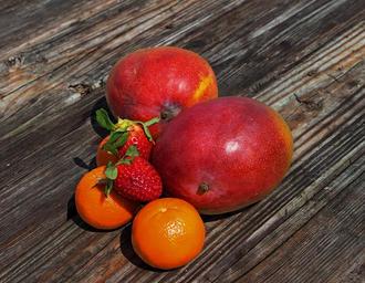 Keywords: fruit mango tropical fruit strawberries tangerine
