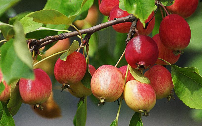Keywords: fruit nature apples foliage red apple miniature apples branch edible