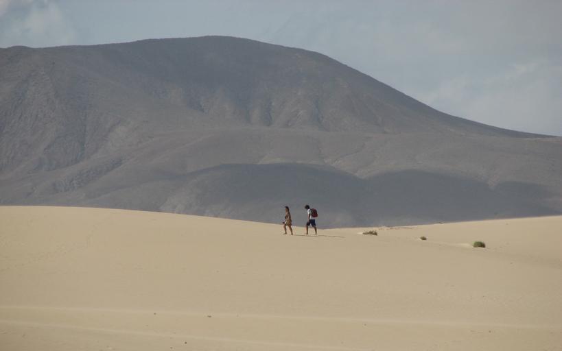 Keywords: fuerteventura desert landscape spain sand dry hot alone walking people hiking