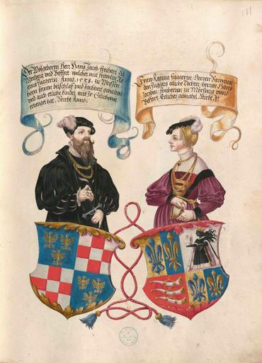 | Keywords: Fugger Ehrenbuch 101.jpg Geheimes Ehrenbuch der Fugger hergestellt in der Werkstatt Jörg Breu d J 1545 “1549<br /> Portrait- und Wappendarstellung Johann Jakob von Mörsperg Freiherr von Belfort und Regina Fugger http //daten digitale-sammlungen de/~db/0004/bsb00042105/images/ 1545 “1549 workshop PD-old-100 Geheimes Ehrenbuch der Fugger Portraits in Geheimes Ehrenbuch der Fugger Coats of arms in Geheimes Ehrenbuch der Fugger Coats of arms of Fugger von Kirchberg und Weißenhorn family Coats of arms of Mörsperg family |