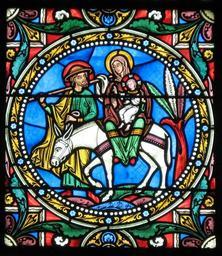 Keywords: Fuite en Egypte Coll. du Dorat.jpg Fuite en Egypte Collégiale du Dorat Haute Vienne XIXème siècle 2006-12-29 own assumed Villemartin Gothic revival stained glass windows in France Flight into Egypt on stained glass windows Round pictures Collégiale Saint-Pierre du Dorat Donkeys on stained glass windows 19th-century stained glass windows