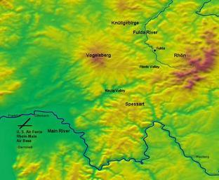 Keywords: Fulda Gap Terrain Features.png Map featuring Fulda Gap terrain English Wikipedia 2007-02-24 en English Wikipedia W B Wilson Maps of the military history of Germany Maps of Hesse Maps of the Cold War Topographic maps of Hesse Maps of mountains of Germany Maps of the Bundeswehr Maps of battles of Germany