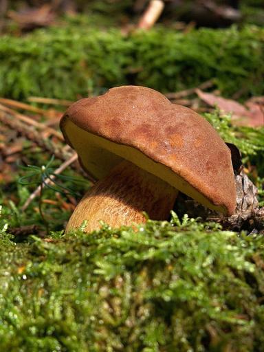 Keywords: fungus boletus bun edible mushroom picking macro nature collection south bohemia forest moss