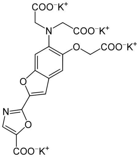 Keywords: Furaptra.svg en Furaptra; Mag-Fura-2; tetrapotassium salt de Furaptra Own Yikrazuul 2008-12-20 Fluorescent dyes Cell diagrams Potassium salts of organic compounds Isoxazoles Benzofurans