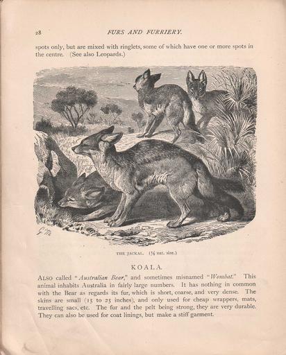 | Keywords: Furs and Furriery, by R. Russ Winkler, Furrier in Edinburgh, Princess Street (04 page 28 The Jackal; Koala).jpg Furs and Furriery by R Russ Winkler Furrier to Her Majesty The Queen Edinburgh 132 Princess Street June 1899 Furs and Furriery Pelze und Kürschnerei von R Russ Winkler Kürschner Ihrer Majestät der Königin Edinburgh Juni 1899 50 Seiten + Anzeigenanhang 17 x 20 5 cm Halbleinen Collection Kuhn 1899-06 R Russ Winkler Friedrich Specht 6 Mai 1839 in Lauffen am Neckar; 12 Juni 1909 in Stuttgart PD-old Furs and Furriery by R Russ Winkler Friedrich Specht Koalas in art Canis mesomelas |