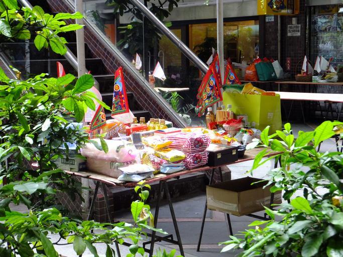 | Keywords: Futai Village 2012 Ghost Festival before Opening 20120825e.JPG zh-tw 2012年臺北市 山 富泰里中元普渡法 ,新光民生廣場華廈中庭中部 張祭品準備好的供桌 2012-08-25 12 36 57 Own 玄史生 other versions 2012 Ghost Festival of Futai Village Songshan District Taipei Tables in Taiwan 玄史生写 文庫 Taken with Fujifilm FinePix F550EXR Uploaded with UploadWizard cc-zero |