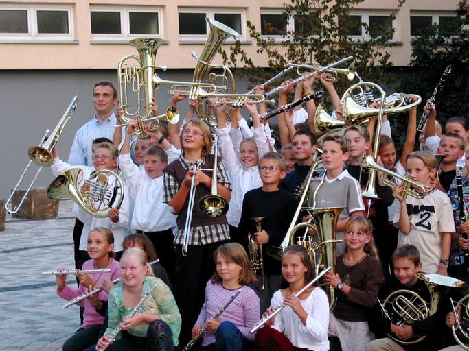 Keywords: Fvs-blasorchester.jpg Gruppenaufnahme des Blasorchesters der Freiherr-vom-Stein-Schule unter Leitung von OStR Andre Müller 2003-09-08 own assumed Dieter Umlauf Freiherr-vom-Stein-Gymnasium Fulda Concert band