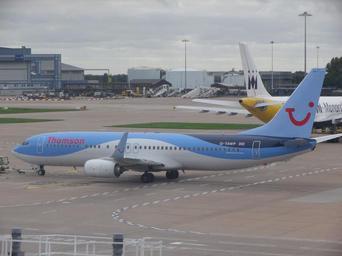 Keywords: G-TAWP MAN.JPG en A Thomson Airways Boeing 737-800 G-TAWP Being pushed back from Gate 207 as TOM2552 to Naples own MKY661 2013-09-20 G-TAWP aircraft Boeing 737 of Thomson Airways at Manchester Airport