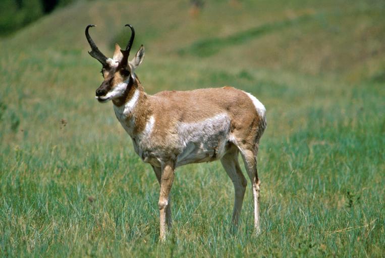 | Keywords: Gabelbock fws 1b.jpg The en pronghorn is often called an antelope in North America but it is not a true antelope The pronghorn is the fastest land mammal in North America capable of running over 60 mph for short distances and maintaining a speed over 40 mph for many miles en Pronghorn - male <br> The original USFWS image has been edited by the uploader to reduce size and increase brightness 2008-04-18 http //digitalmedia fws gov/cdm4/item_viewer php CISOROOT /natdiglib CISOPTR 5797 CISOBOX 1 REC 13 US Fish Wildlife Service Leupold James C PD-USGov-FWS not edited; cropped PD-USGov Uploaded with UploadWizard Antilocapra americana Male pronghorns |