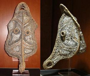 | Keywords: Gable mask, Blackwater River, East Sepik, Papua New Guinea, wickerwork, earth pigment and mud, East-West Center.jpg en Gable mask Blackwater River East Sepik Papua New Guinea wickerwork earth pigment and mud East-West Center front and side views own Haa900 photo 2010 East-West Center Masks of Papua New Guinea Sepik | ||||